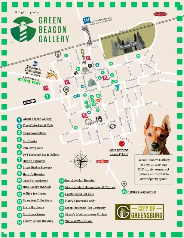 G.B.G. is a volunteer-run DIY music venue, art gallery and rentable event/party space! Our mission is to provide compelling, quality art to the community of Greensburg.