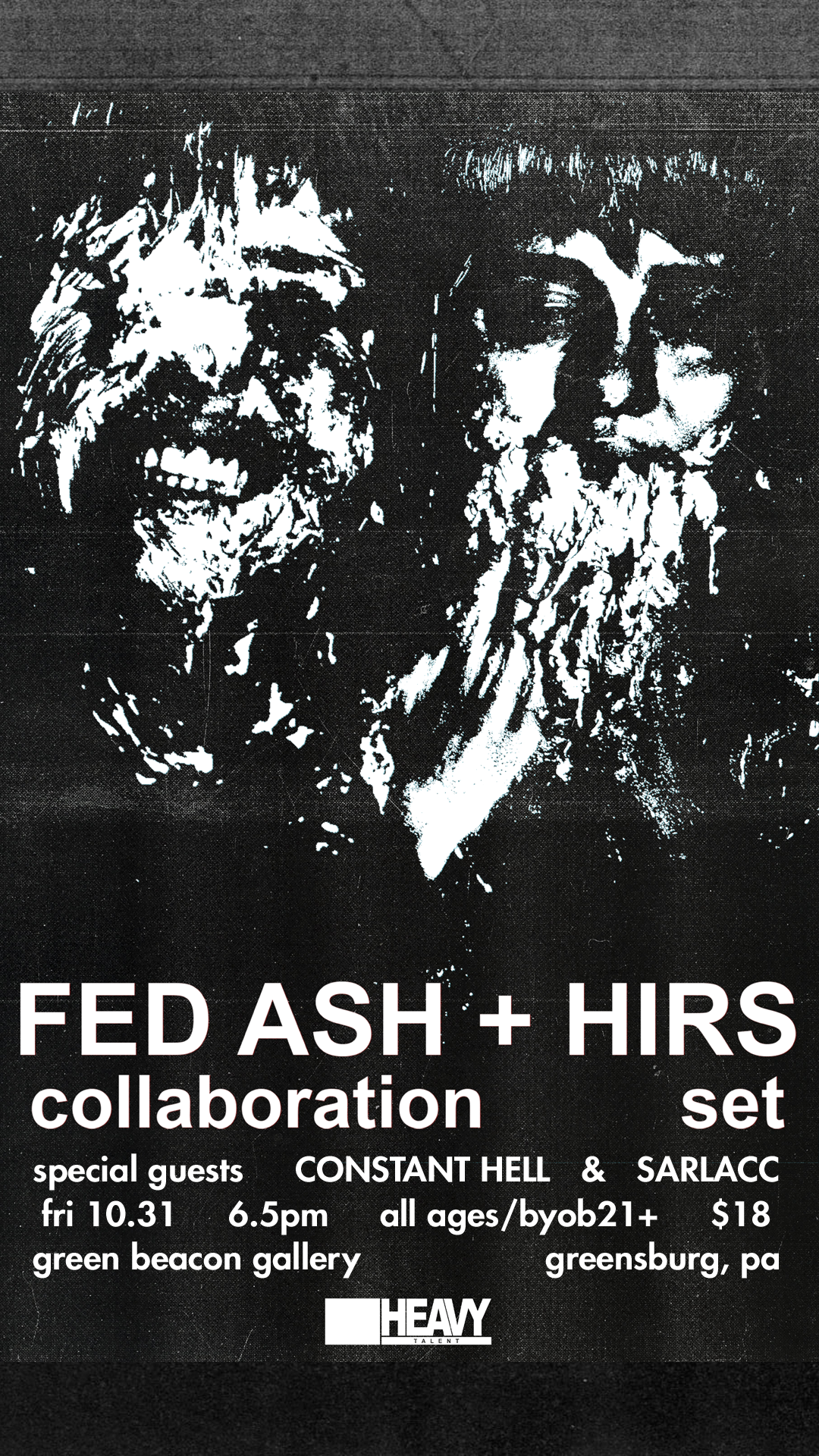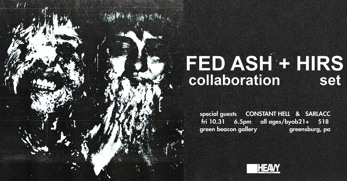 Doors 6:30 // Grind Time 7:15 All ages // BYOB21+ w/ ID $18 cover Advance tickets available here: https://www.tickpick.com/organizer/event/fed-ash-hirs-collaboration-set-w-special-guests-constant-hell-sarlacc-32918154 Free parking in large lot behind gallery. All artwork inside the gallery will be available to browse and buy during the show, features over 500 pieces from 200+ local/regional artists!
