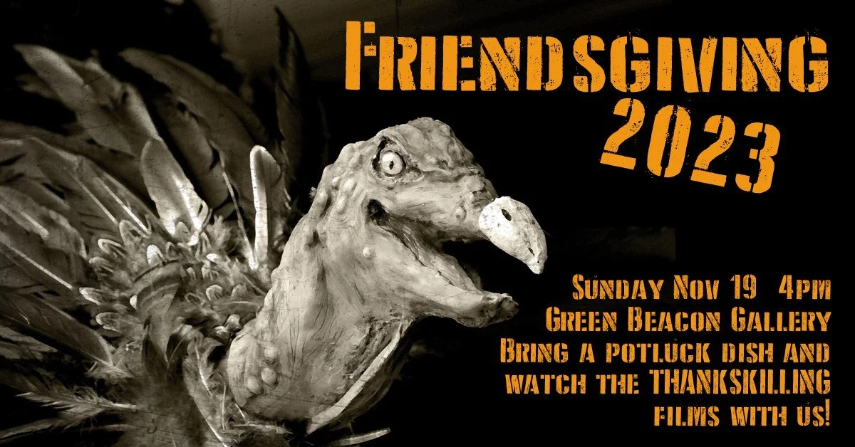 It's a real banquet at the gallery! Join us for an afternoon potluck & annual showing of the Thankskilling films. Bringing a dish is encouraged, veg + non-veg options will be made available. Silly or formal attire are options you may choose to dress in! The gallery is equipped with a refrigerator and microwave if needed. All are welcome!
